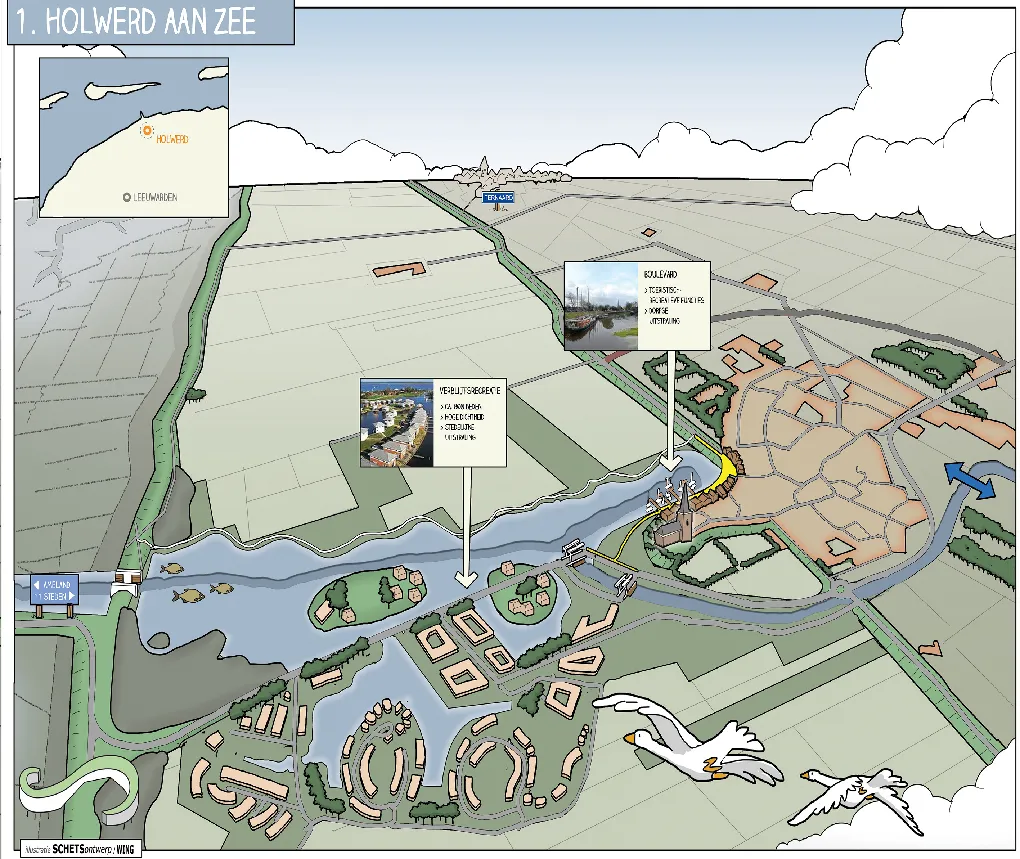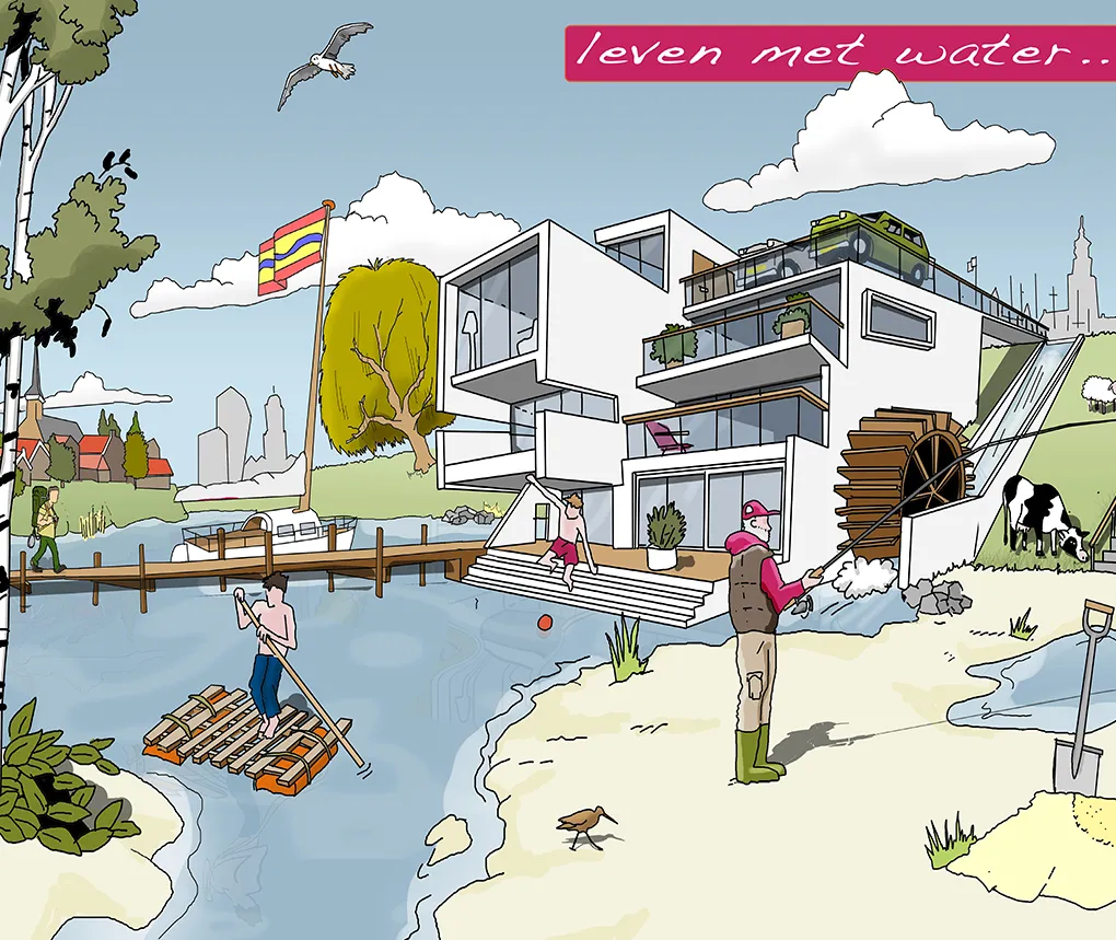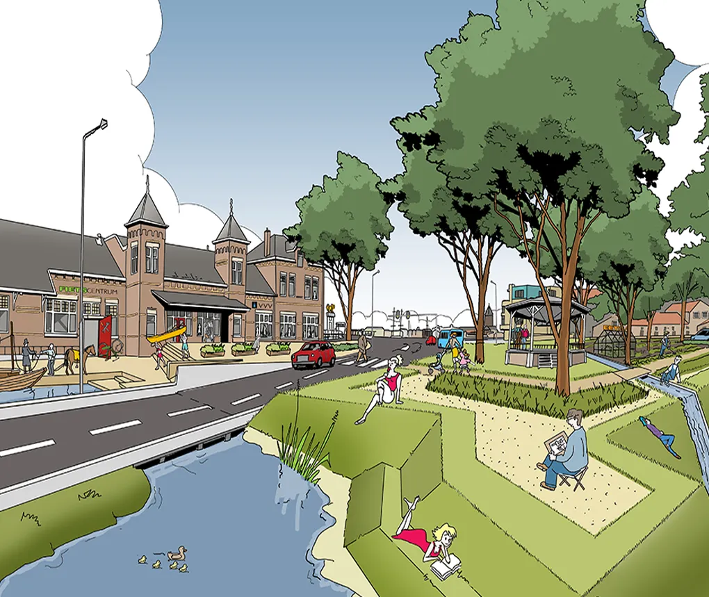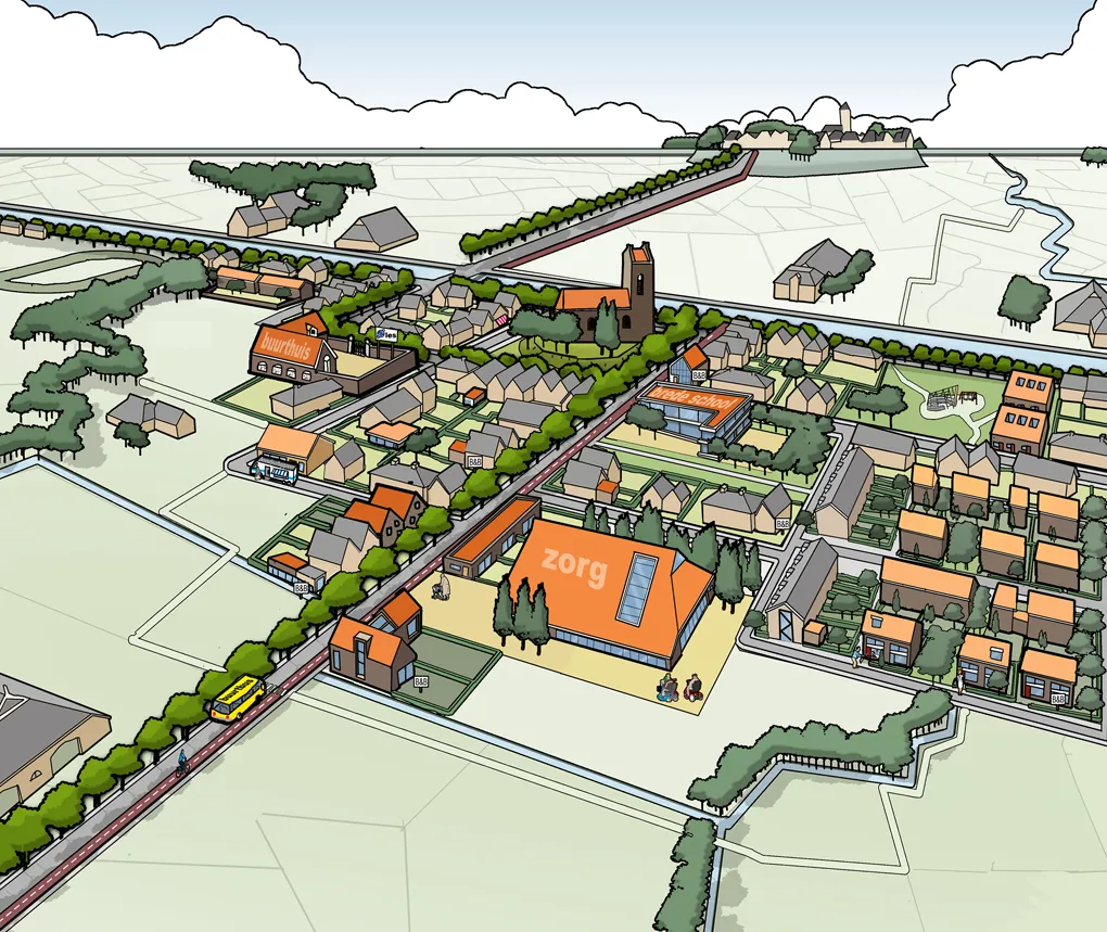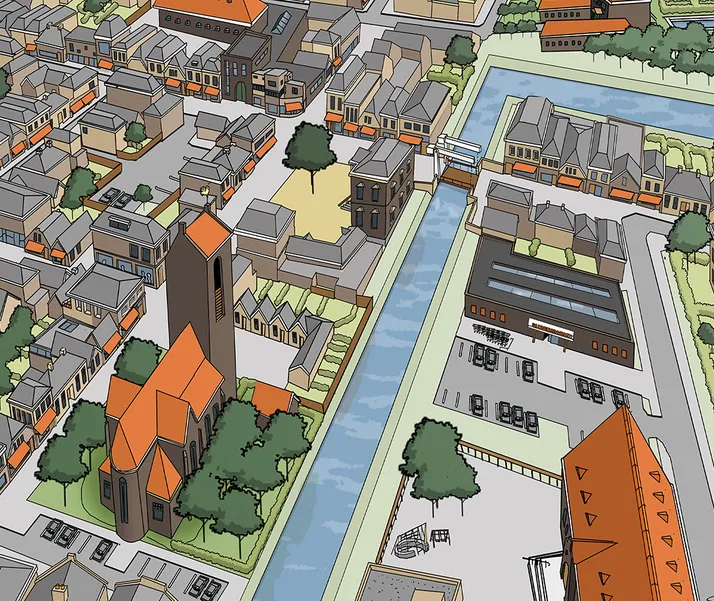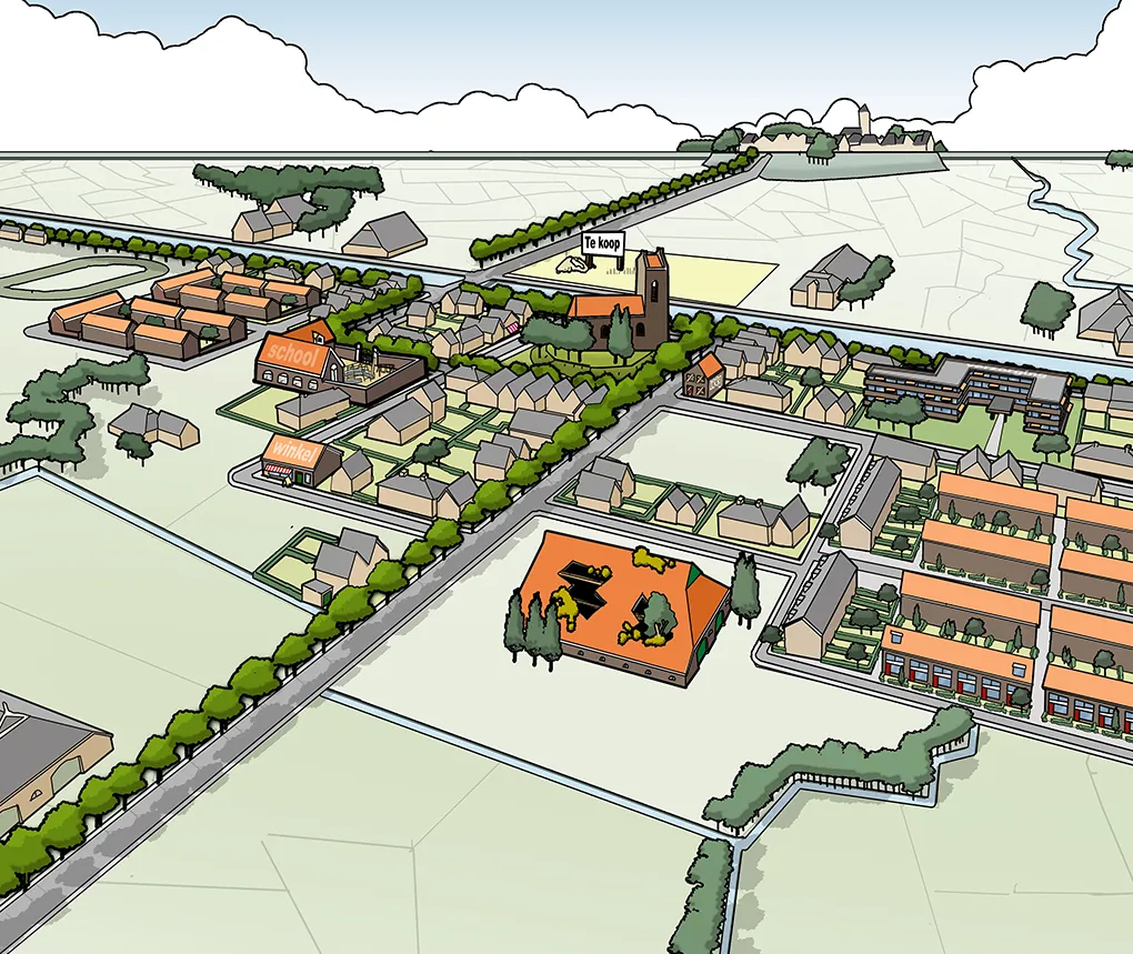 Sommige ideeën, studies of problemen zijn (nog) niet concreet genoeg voor een “echt” ontwerp. Denk aan duurzaamheids-strategieën, krimpscenario’s, ontwikkelkansen of stedelijke dynamiek. Een cartoon van fictieve ruimtelijke setting, waarin deze ruimtelijke verhalen zich afspelen, kan helpen om uw abstracte verhaal te vertellen.