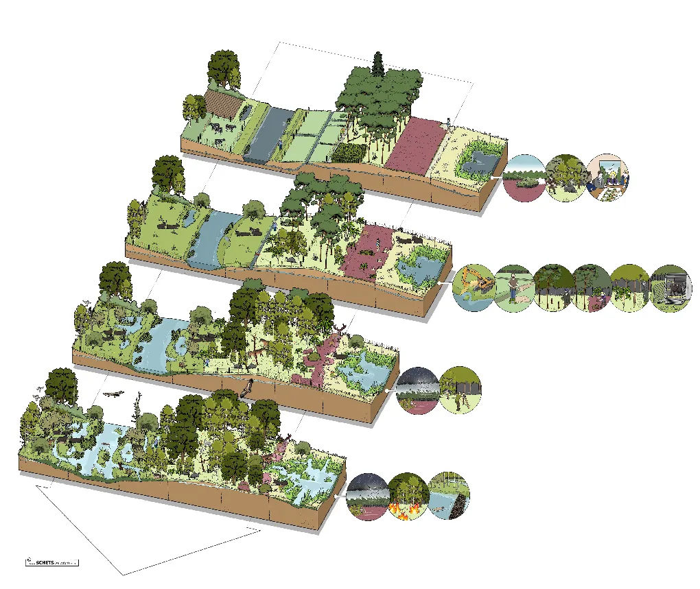 Ik maak graag maatvaste en losse technische illustraties die uw gebouw of plek als een soort bouwpakket uitleggen.